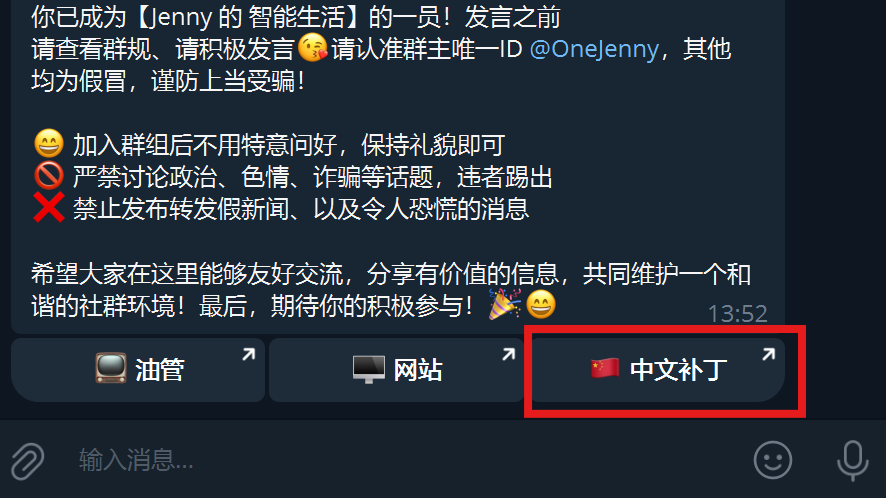 注册完成后默认为英文,你可以点击以下链接加入我的电报群,点击“中文补丁”即可一键切换为中文显示。